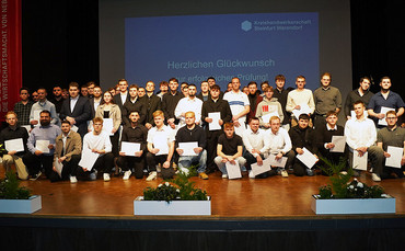 Für die neuen Gesellinnen und Gesellen fand eine stimmungsreiche Abschlussfeier in der Stadthalle Rheine statt. 259 junge Menschen erhielten ihren Gesellenbrief aus den Händen der Innungsvertreter.